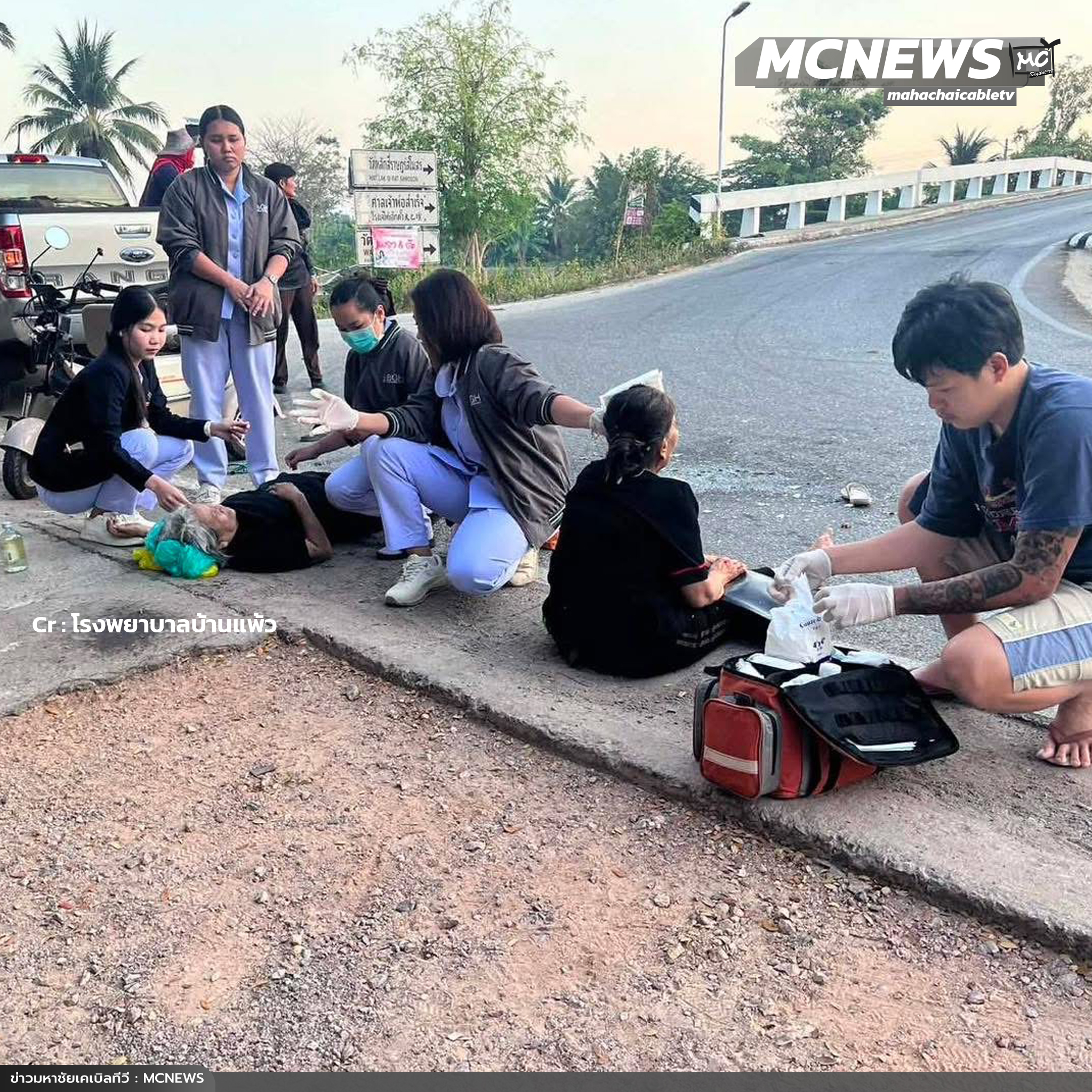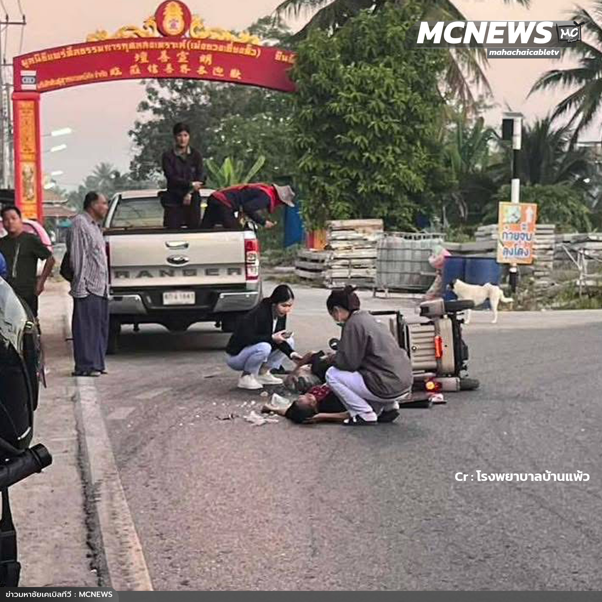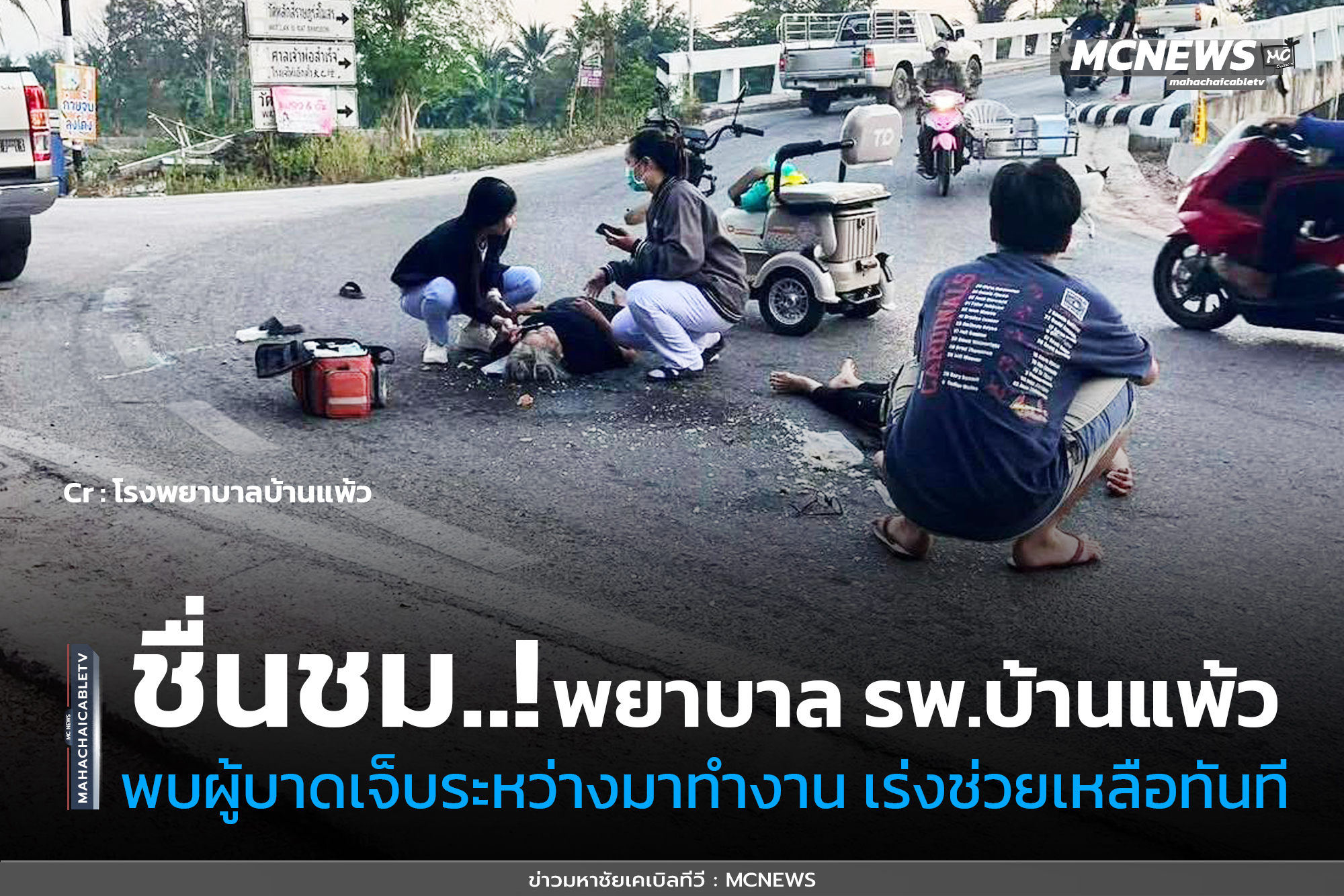 ชื่นชม…! พยาบาลสาวโรงพยาบาลบ้านแพ้ว พบผู้บาดเจ็บระหว่างทางขณะมาทำงาน เร่งให้การช่วยเหลือทันที