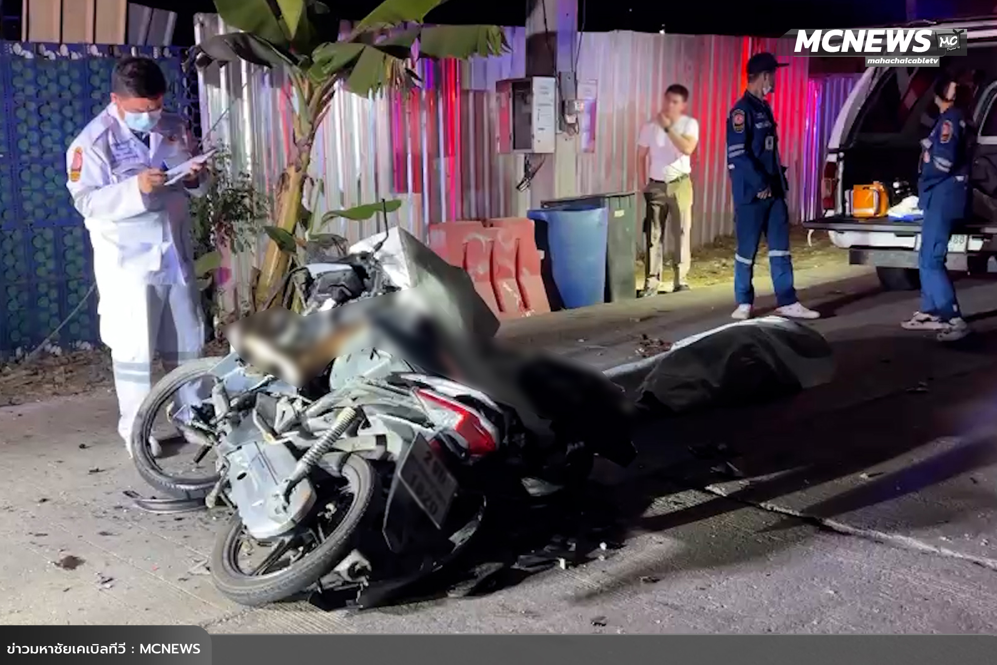 สังเวย 2 ศพ ส่งท้ายปีใหม่ จักรยานยนต์ชนประสานงา บนถนนเลียบคลองหมื่นปรารมภ์
