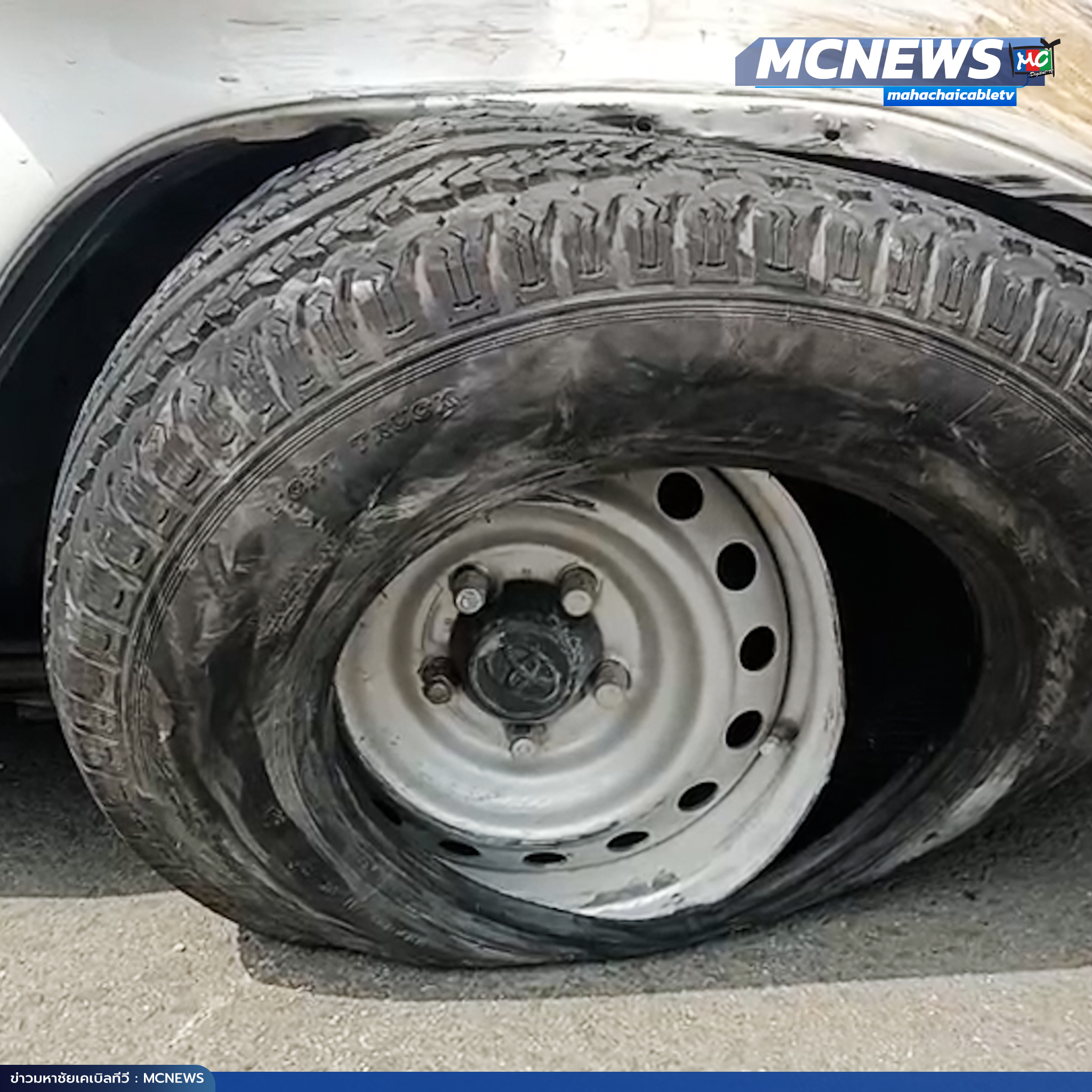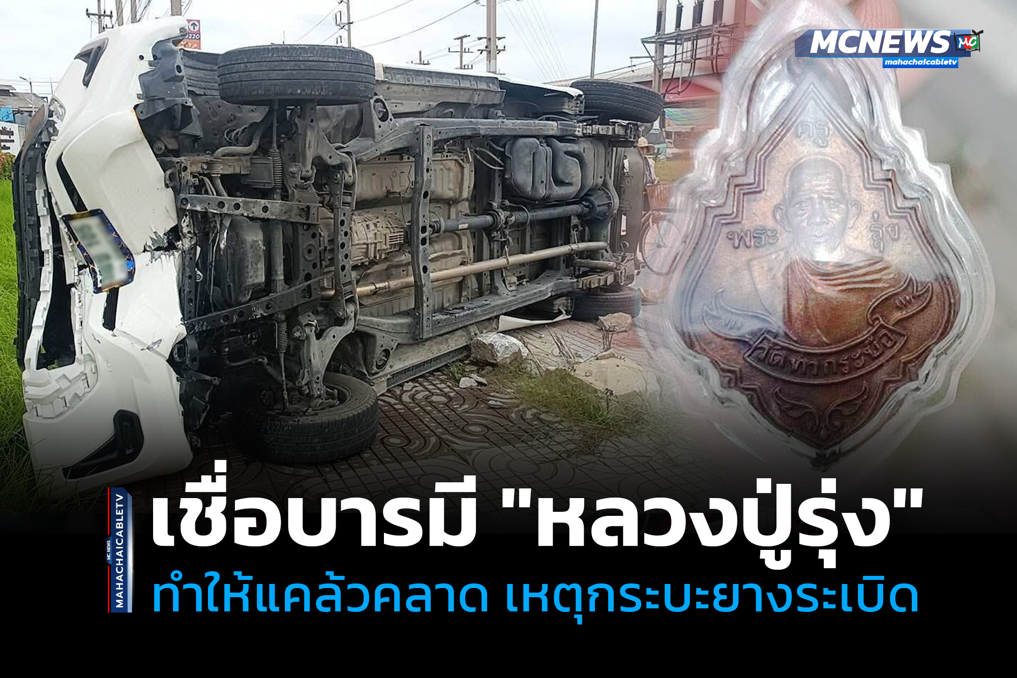 หนุ่มส่งพัสดุ วัย 29 ปี ขับรถยนต์กระบะจะไปเข้าคลัง ล้อหลังเกิดระเบิดทำให้รถเกิดเสียหลักพลิกคว่ำ โชคดีไม่มีผู้รับบาดเจ็บ คนขับชื่อบารมีหลวงพ่อรุ่ง วัดท่ากระบือ ทำให้ตนแคล้วคลาดปลอดภัย