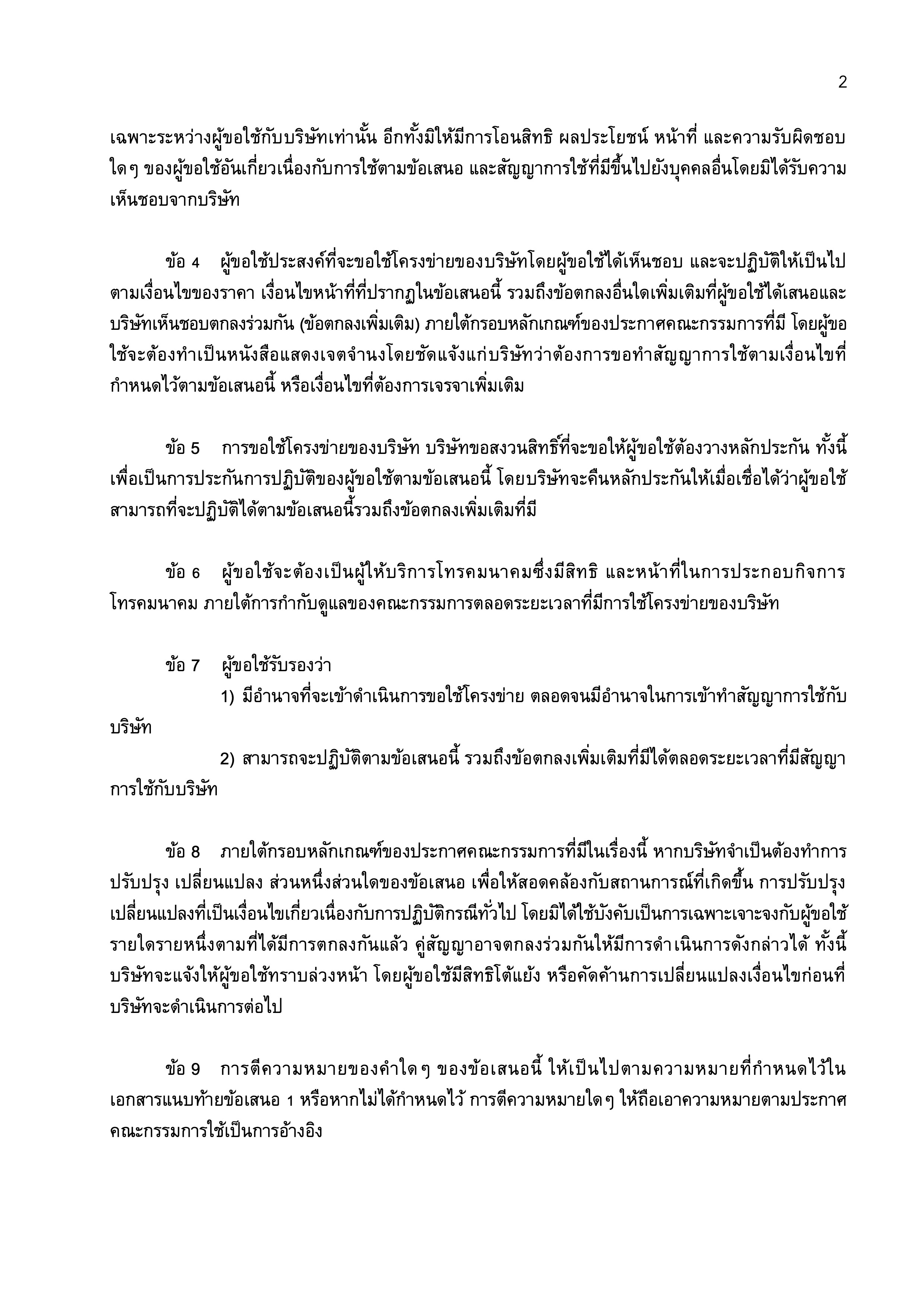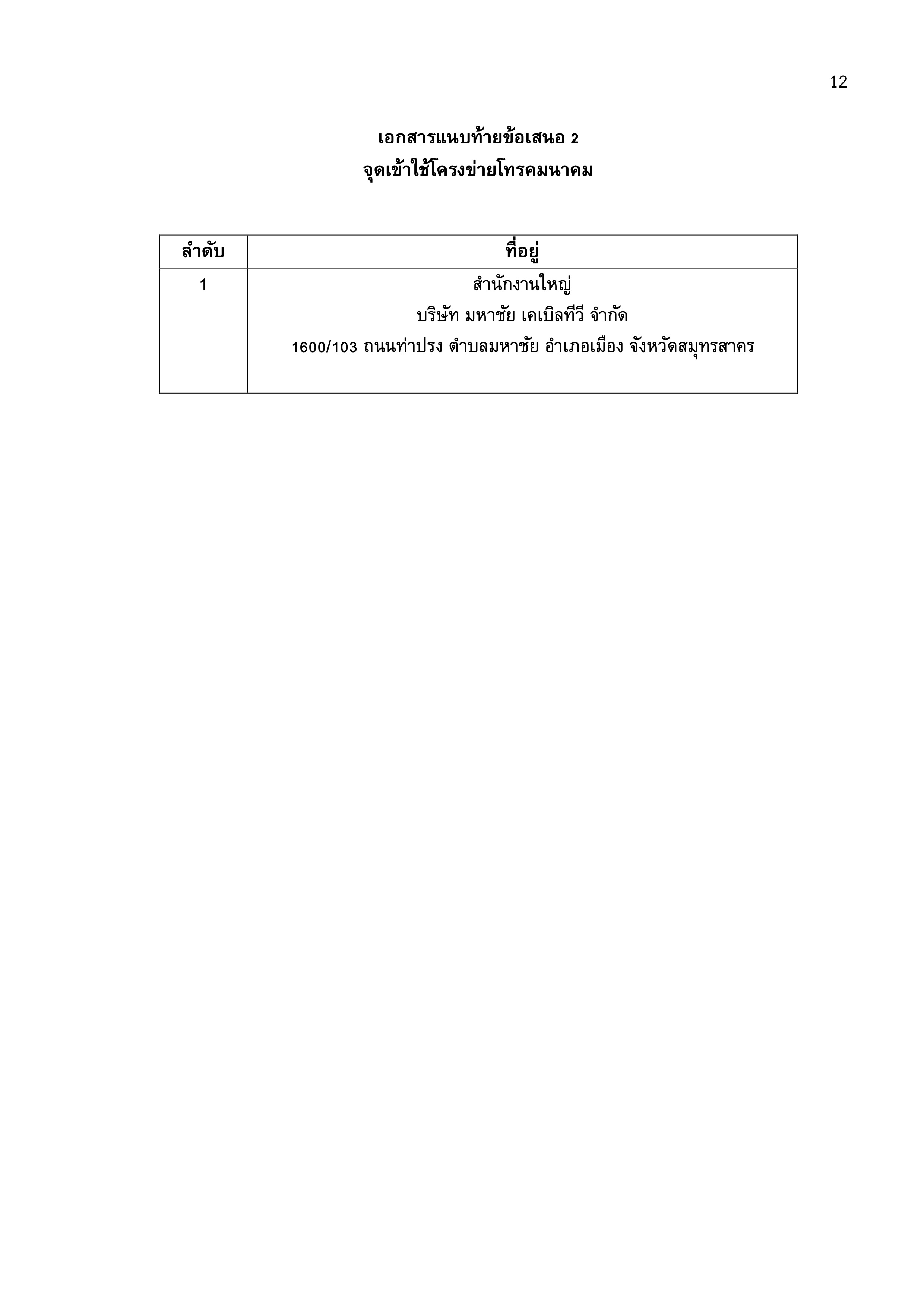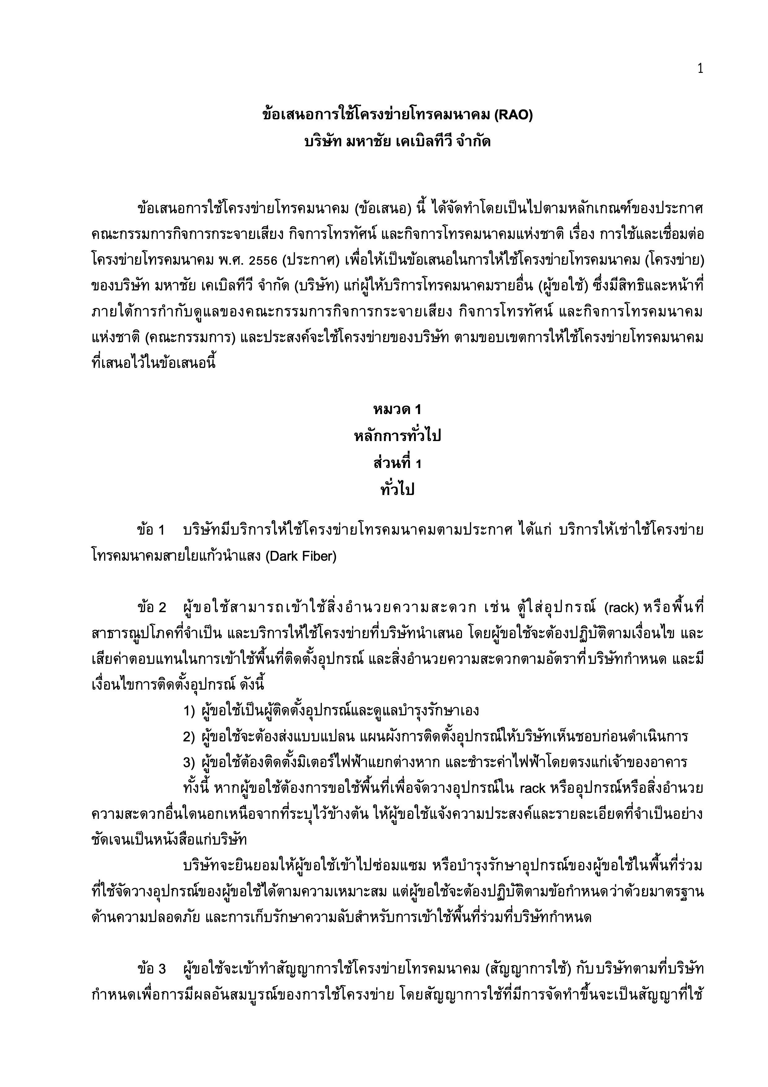 ข้อเสนอการใช้โครงข่ายโทรคมนาคม (RAO) บริษัท มหาชัย เคเบิลทีวี จำกัด